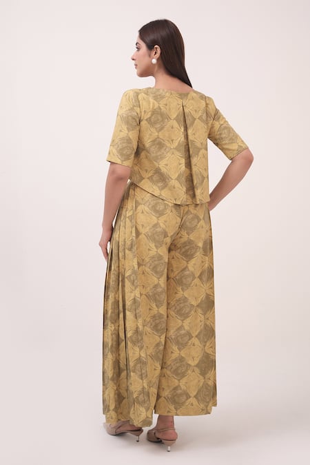 Buy_Ruchi Marodia_Yellow Round Neck Floral Print Herringbone Pant Set _Online_at_Aza_Fashions
