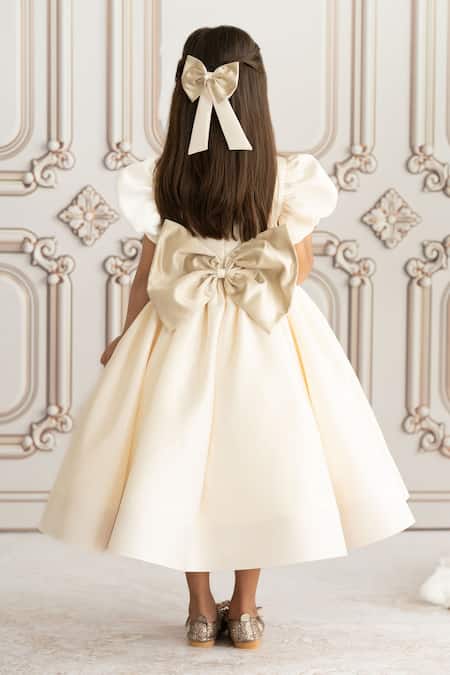Floral hand embroidered bodice with intricate detailing, Puff sleeves for added style, Back zip closure for easy dressing