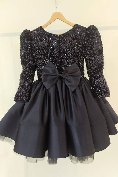 Bow detail at the waistline, Structured flare with tulle layering, Back zip closure