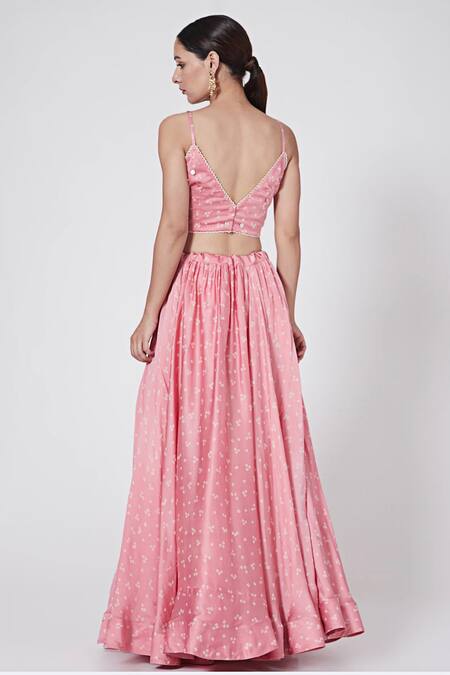 Pink Modal Pearls, Sequins Sweetheart Neck Bandhani Print Blouse Lehenga Set