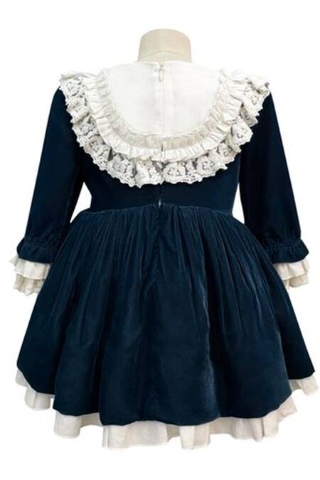 Buy_Jasmine And Alaia_Blue Velvet Rudolph Ruffled Dress_Online_at_Aza_Fashions