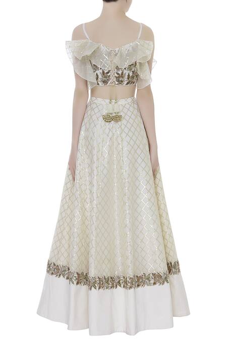 Buy_Rajat K Tangri_White Ruffle Embroidered Blouse With Lehenga_at_Aza_Fashions