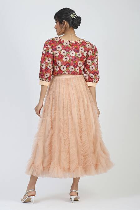Peach Polyester Ruffle Midi Skirt