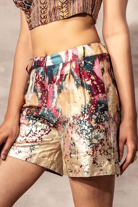 Multi Color Matka Raw Silk Foil , Ikat Shorts