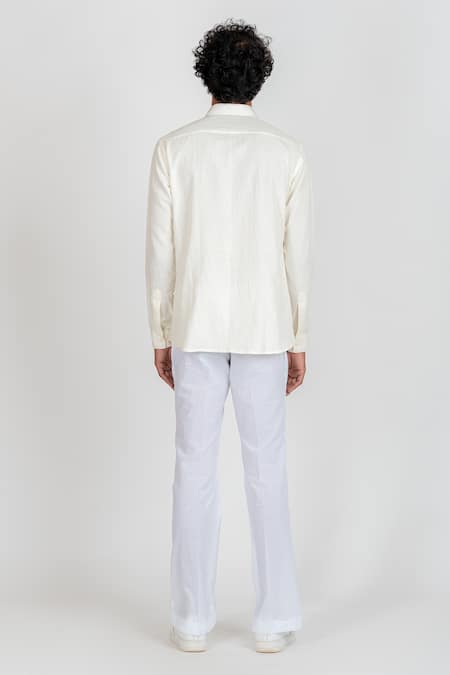 White Cotton Linen Embroidered Bead Work Shirt
