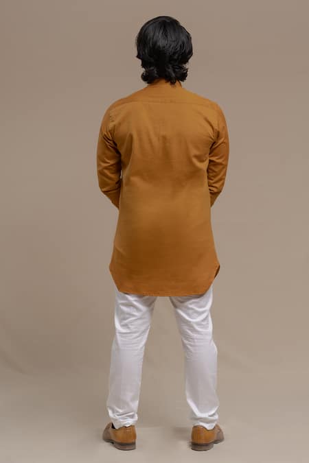 Ochre yellow kurta style shirt. Enhanced with smocking details on the front.