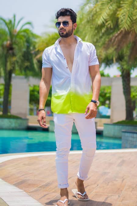 White Enzyme Washed Cotton Ombre Shirt