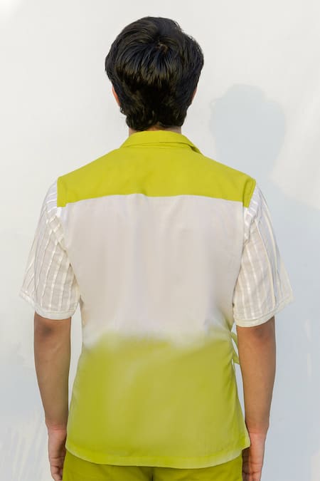 White Enzyme Washed Cotton Ombre Wrap Shirt