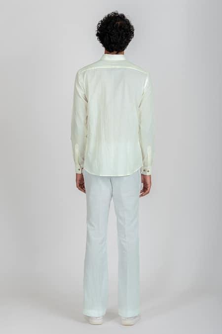 White Enzyme Washed Cotton Thread Work Sail Boat Shirt