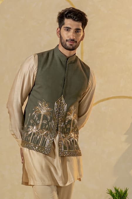Intricate thread and pearl embroidery, Band collar design, Monochrome dyeing technique