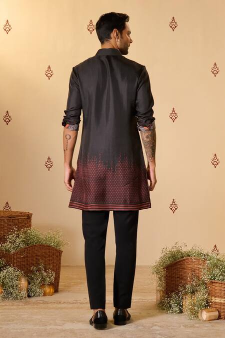 Black kurta featuring adamas butti printed ombre pattern on hem