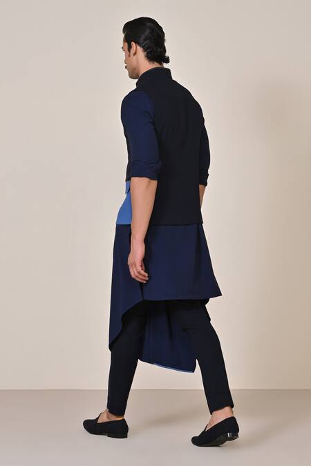 Blue Viscose Colorblock Rivet Embellished Waistcoat