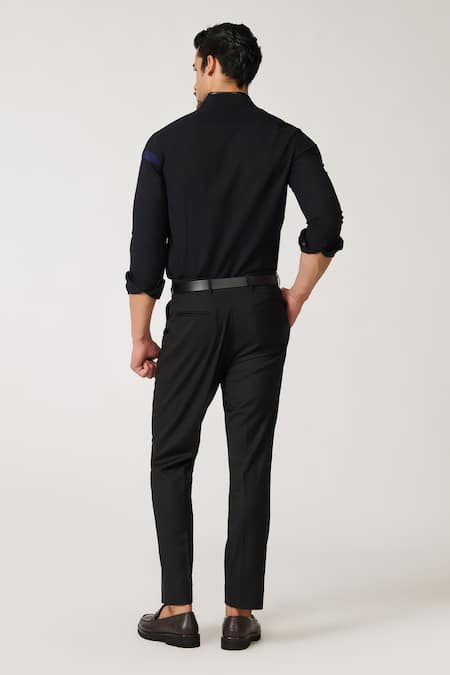 Black Wool, Viscose, Polyester Embroidery Colour Block Patchwork Shirt