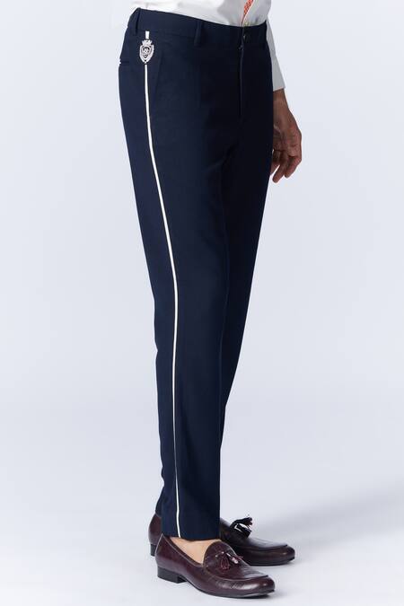 Blue Terrycloth, Viscose, Lycra Contrast Piping Detailed Trouser