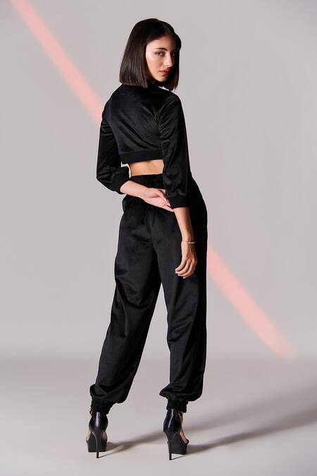 Black Velvet, Jersey, Cotton And Blend Round Cropped Sweatshirt