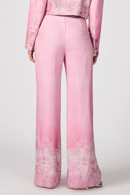 Pink pant featuring floral and geometric tonal print