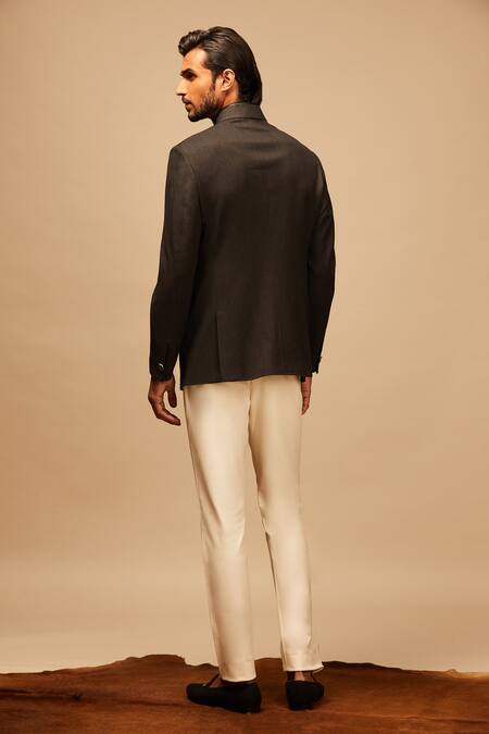 Grey Lycra, Viscose, Poly Blend Hand Embroidered Bandhgala