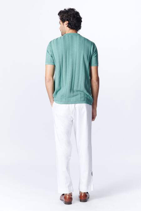 Green Nylon Embroidery Notched Lapel Collar Shirt