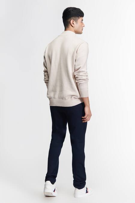 Beige Cotton Embroidery Patchwork Knitted Sweater