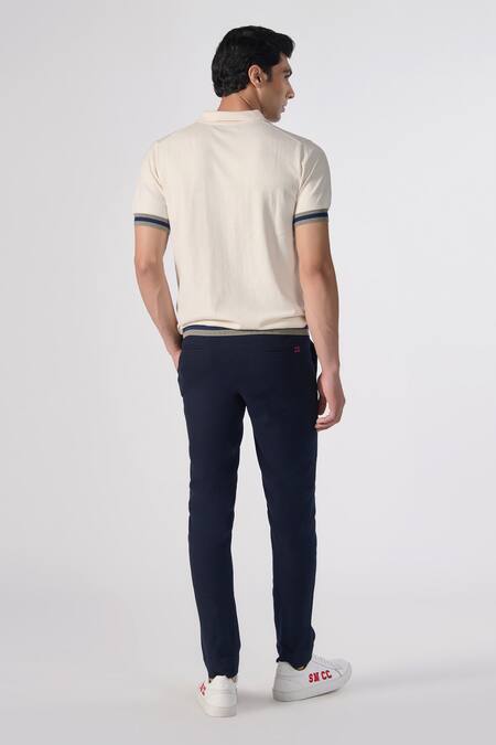 Off White Cotton, Nylon Embroidery Placed Crest Knitted Polo T-shirt