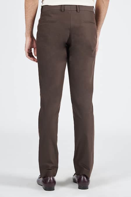 Brown Cotton, Lycra, Polyester Tape Embellished Trouser