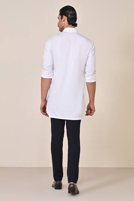 Off-white kurta featuring thread placement embroidery in a crest pattern