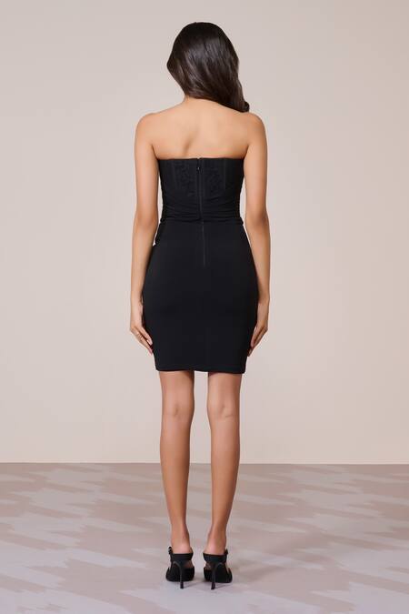 Buy_S&N By Shantnu Nikhil_Black Jersey, Spandex, , Mesh Sweetheart Neck Corset Mini Draped Dress_Online_at_Aza_Fashions