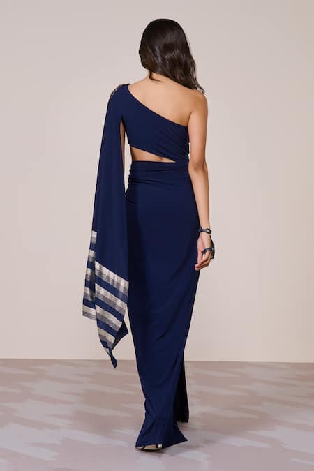 Navy Jersey, Spandex One Shoulder Saree Gown
