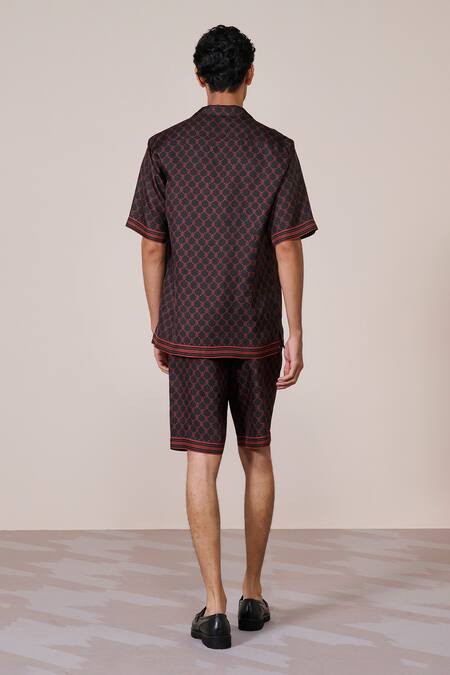 Buy_S&N By Shantnu Nikhil_Black Silk, Twill Adamas Print Shirt_at_Aza_Fashions
