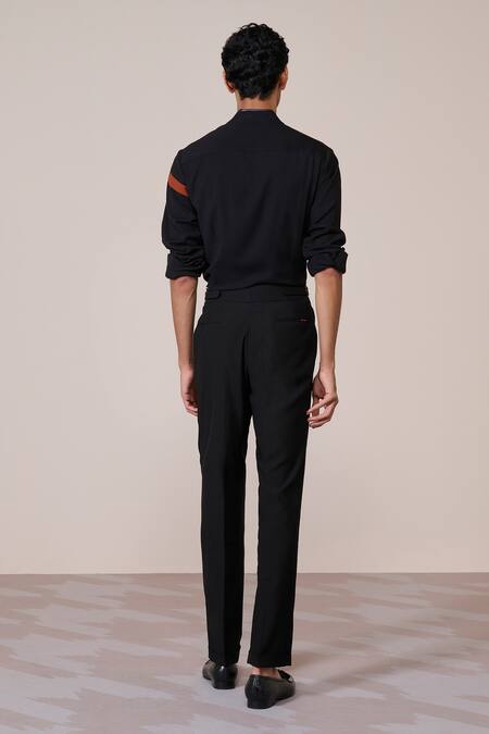 Black designer shirt made from brushed suiting blend featuring sartorial embroidery