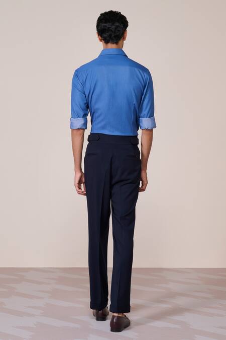 Buy_S&N By Shantnu Nikhil_Blue Viscose, Spandex Metallic Thread Designer Dark Denim Slim Fit Shirt_Online_at_Aza_Fashions