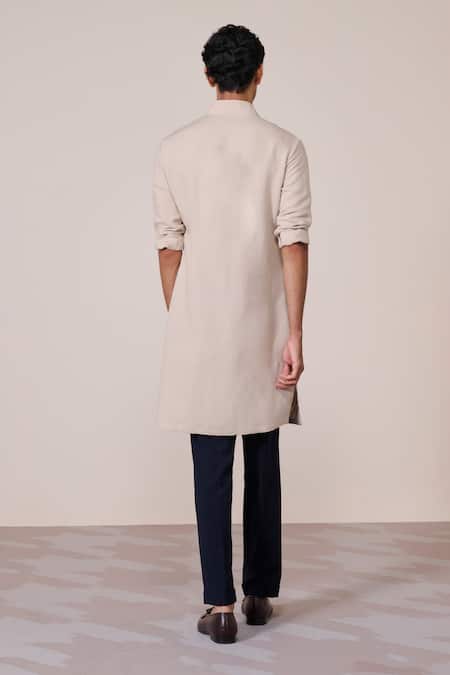 Beige Rayon, Linen Embroidery Ecru Traditional Print Kurta