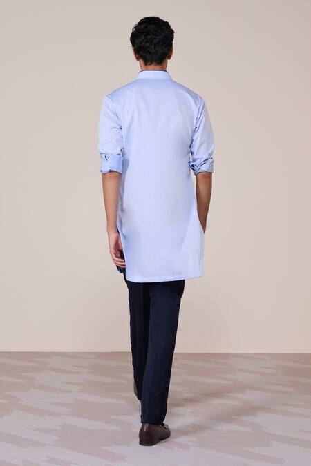 Blue Cotton Embroidery Light Slim Fit Kurta