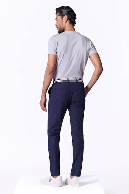 Blue Spandex Embroidery Navy Slim Fit Trouser