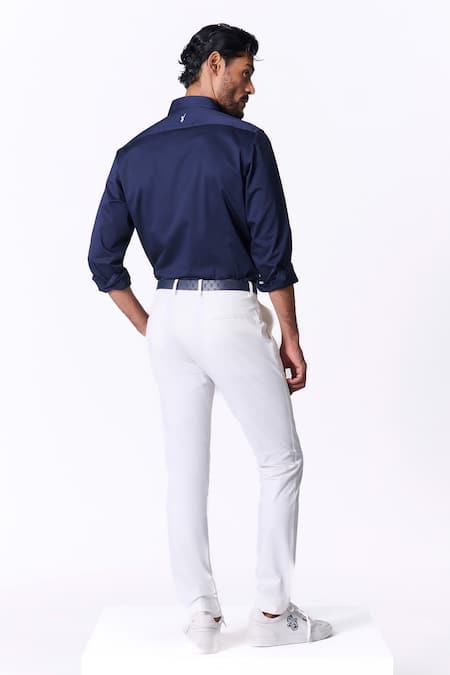 Blue Cotton, Lycra Navy Striped Piping Slim Fit Shirt
