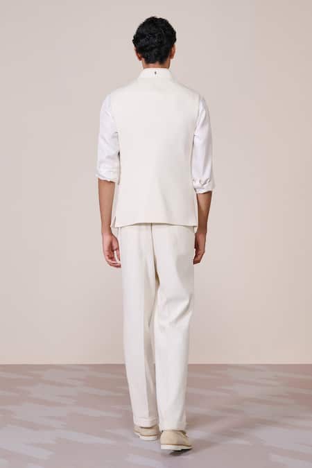 Off White Twill, Silk Embroidery Sartorial Nehru Jacket