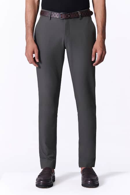 Gray Spandex Embroidery Olive Slim Fit Trouser