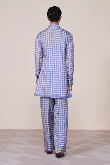 Buy_S&N By Shantnu Nikhil_Blue Silk, Twill Racer Designer Kurta_at_Aza_Fashions