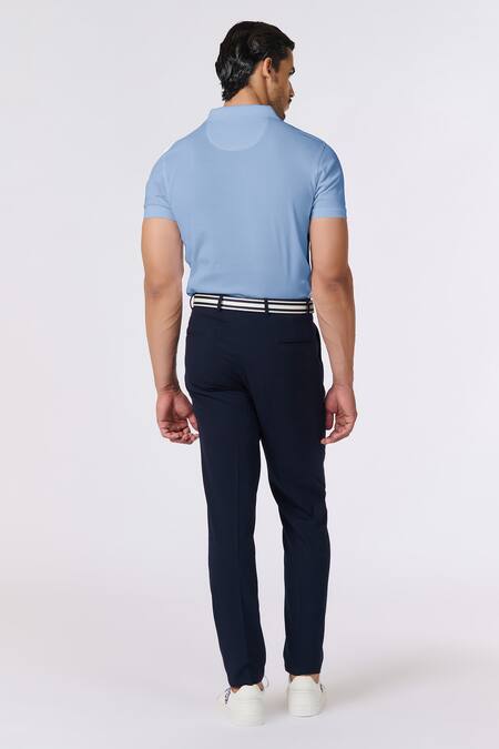 Buy_S&N By Shantnu Nikhil_Blue Embroidery Slate Slim Fit T-shirt_Online_at_Aza_Fashions