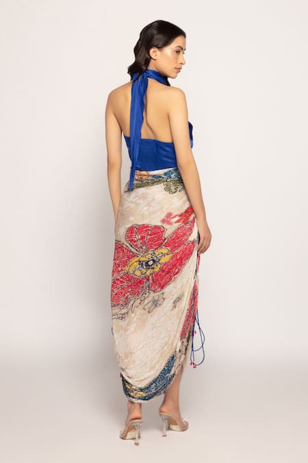 Blue Silk, Cotton Halter Neck Bandhani Print Dress