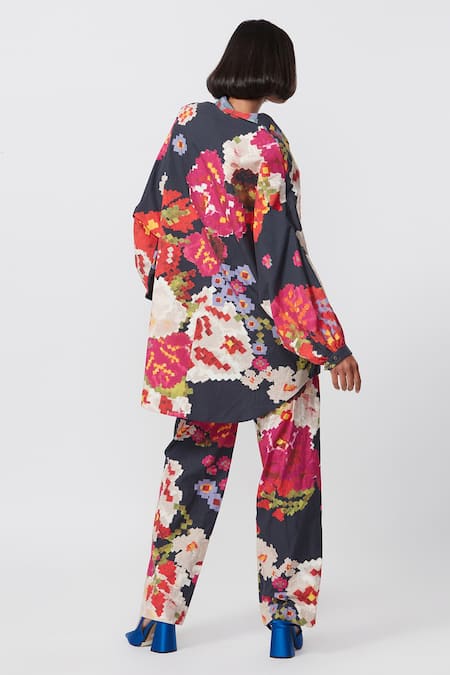Multicolor high waist trouser featuring an abstract floral print