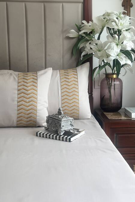 Ivory king size bedsheet. Comes with set of 2 pillow covers with chevron patterns.