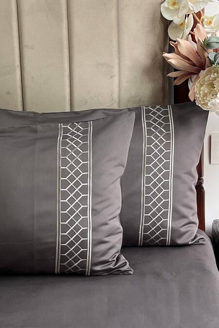 Titanium grey cotton bedsheet set with zigzag detailing which includes 1 bedsheet & 2 pillow covers.