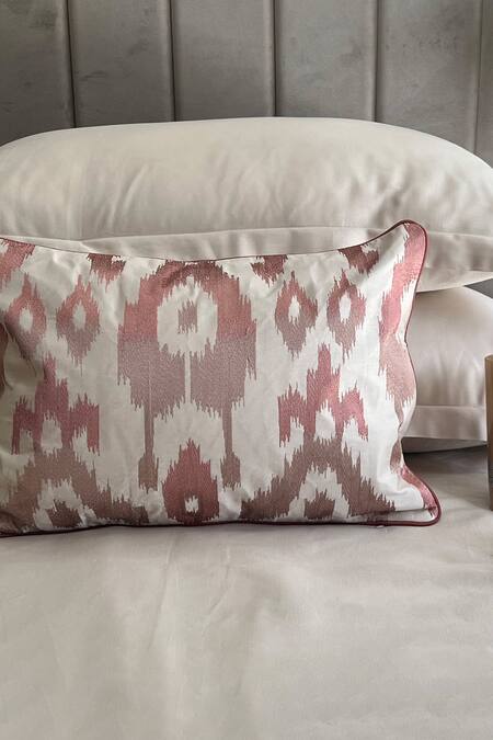 Oats beige bedsheet in cotton base and square shaped. Comes with rectangular shaped pair of pillow covers and one Majestic printed accent cushion cover.