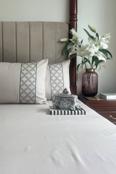 Buy_Sadyaska_Ivory Cotton Rich Maroc Plain Bedsheet Set_at_Aza_Fashions