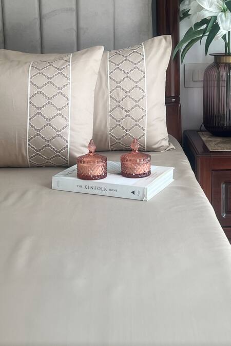 Beige Cotton Rich Maroc Solid Bedsheet Set