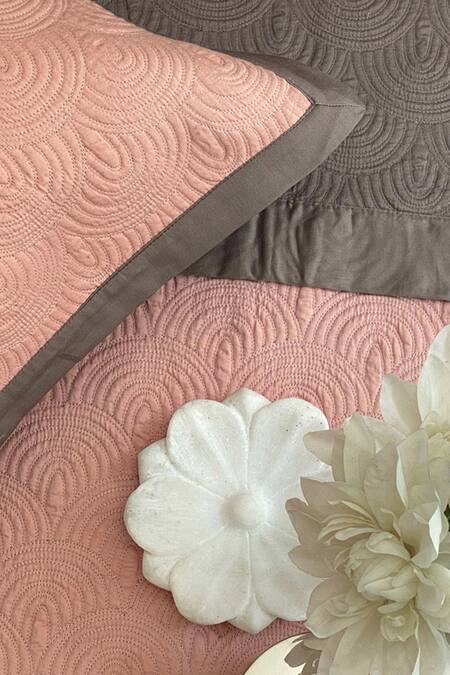 Coral- taupe anti-bacterial coated reversible bedsheet with quilted patterns. Comes with rectangular-shaped pillow covers.