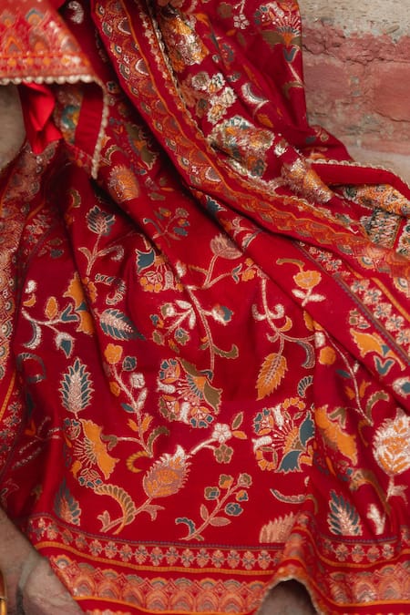 Red Lining Shantoon, Moonga Silk Kani Weave Yazrin Floral Woven Kurta Set