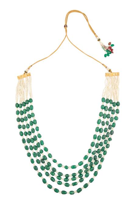 Green beaded multi-layered necklace featuring pearl detailing