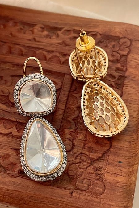 Buy_Saga Jewels_White Crystals, Rhinestones Designer Stone Drop Earrings _at_Aza_Fashions
